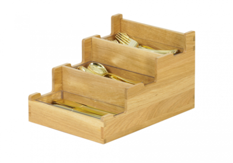 Sydney Serving Flatware Holder, 12"W x 10"D x 3"H, 3 Section, oak