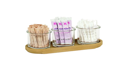 Renew 3 Jar Display, 16"W x 6"D x 4"H, upcylced rice hulls construction (includes 3 round jars)