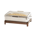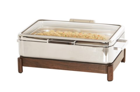 Induction Chafer, 26"W x 18.5"D x 10"H, rectangular, metal with soft-close see-through lid, walnut