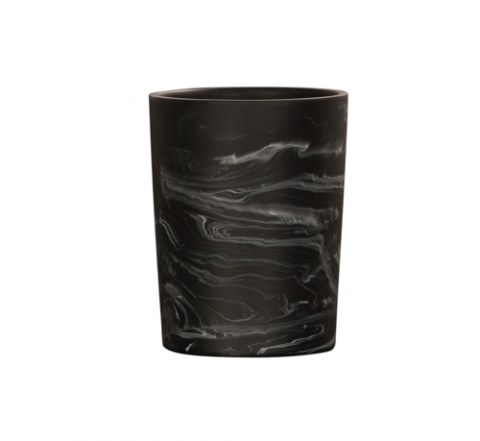 Cylinder, 4.75" dia. x 5.75"H, round, resin, black marble finish