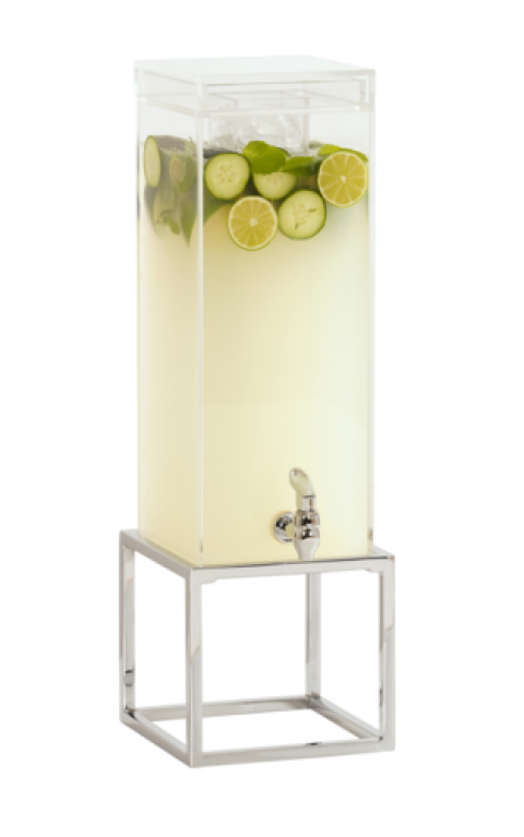 Ice Beverage Dispenser, 8.25"W x 9.75"D x 25.75"H, 3 gal., open frame, clear polycarbonate chamber, chrome plate finish, ice chamber