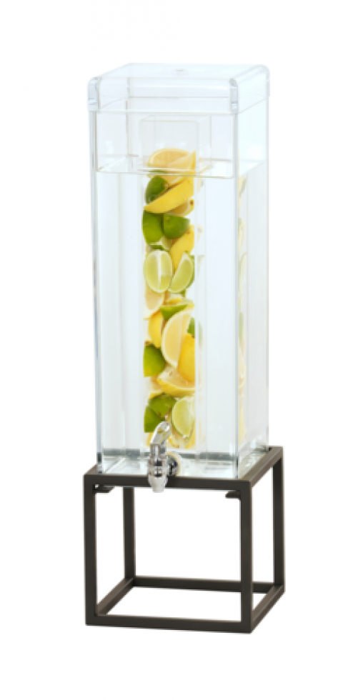 Infusion Beverage Dispenser, 8.25"W x 9.75"D x 25.75"H, 3 gal., open frame, clear polycarbonate chamber, black, infusion chamber