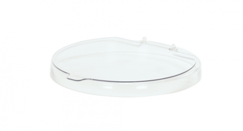 Lid, 7.5" dia. x 1"H, with hinge, designed to fit Cal-Mil polycarbonate bowls, clear