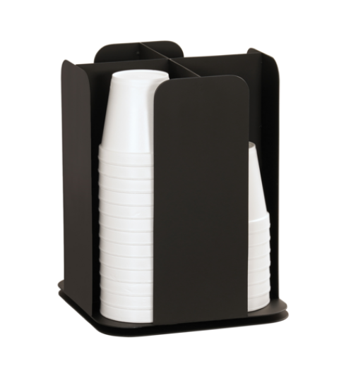 Onyx Revolving Cup Holder, 9.75" dia. x 12.5"H, designed to hold cups up to 4" dia., black powder-coated metal