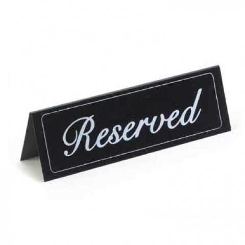 "Reserved" Message Tent, 9-1/4" x 3"H, screen printed on both sides, cursive, black vinyl