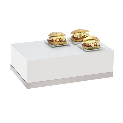 Luxe Display Riser, 12"W x 20"D x 6-1/2"H, rectangular, white metal body, stainless steel accent base