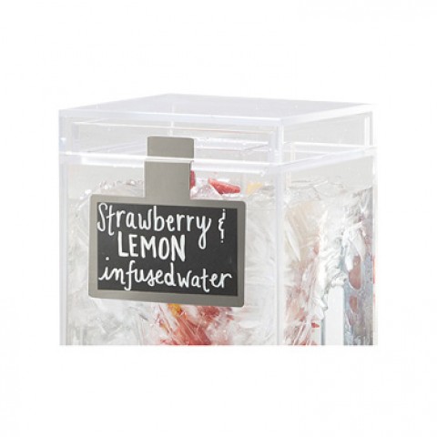 Beverage Sign, 5"W x 3"D, black write-on surface, accommodates all square beverage dispensers, stainless steel (use with chalkboard pen)