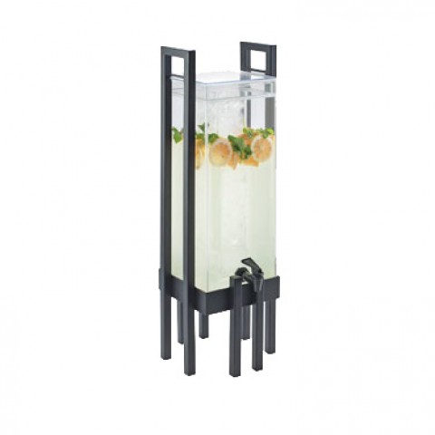 One by One Beverage Dispenser, 3 gallon capacity, 9"W x 9"D x 28-1/2"H, square, infusion chamber, lid, spigot, clear insert to secure lid, top handles, black powdered coated steel frame, acrylic, clear