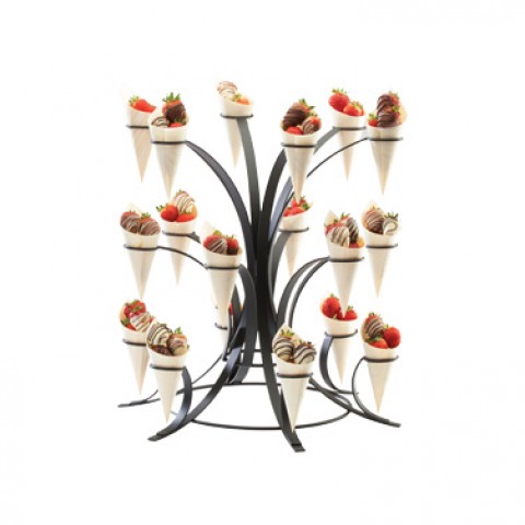 Multi-tier Cone Holder/Display, 20" dia. x 20-1/2"H, accommodates (18) serving cones, metal frame, black (cones sold separately: item CH107)