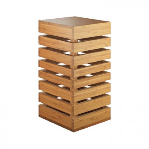 Crate Riser, 12"W x 12"D x 10"H, square, slotted sides for shelving, open base, solid top, flip to utilize as a basket, bamboo