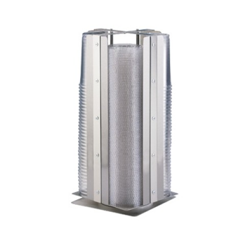 Urban Cup/Lid Organizer, 7-3/4"W x 7-3/4"D x 18"H, (4) section, revolving, accommodates cups/lids up to 3-3/4" diameter, brushed stainless steel with accented rivets