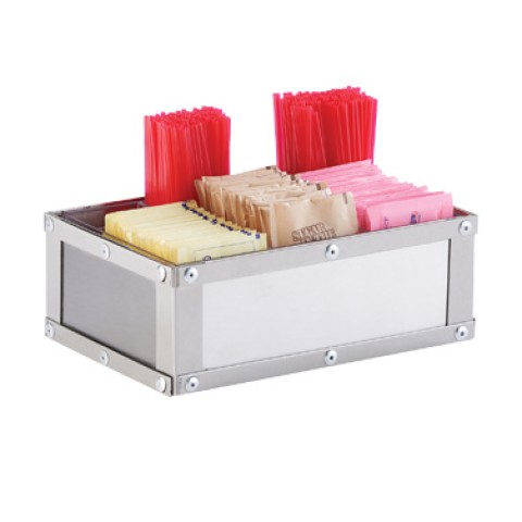 Urban Condiment Organizer, 9"W x 6"D x 5-1/4"H, rectangular, (6) compartment, brushed stainless steel with accented rivets