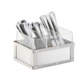 Urban Flatware Organizer, 9"W x 6"D x 5-1/4"H, (3) section, rectangular, removable clear acrylic insert, brushed stainless steel with accented rivets