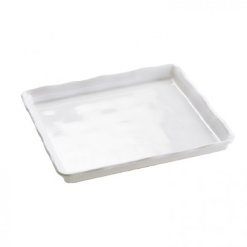 Tray, 13-7/8"W x 12-7/8"D x 1"H, rectangular, with organic edge, melamine, white