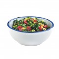 Bowl, 5-1/2" dia., round, white melamine with blue rim, enamel