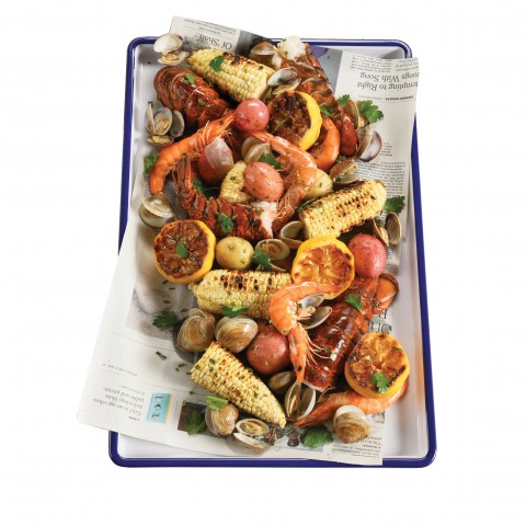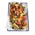 Serving Tray, 12"W x 18"D x 1"H, rectangular, white melamine, enamelware, blue