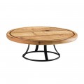 Madera Cake Pedestal, 13.5" dia. x 4-1/2"H, round, rustic pine platter, powder coated metal base, black