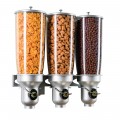 Cereal Dispenser, (3) 5L capacity cylinders, 18-1/2"W x 6-3/4"D x 19-3/4"H, free flow mechanism, wall-mountable, platinum (hardware not included)