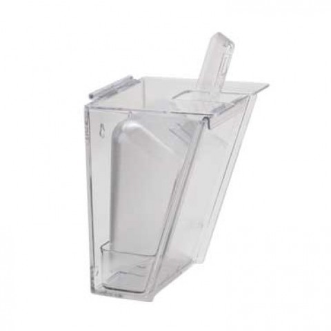 Scoop Holder, 6"W x 5-1/4"D x 11-1/2"H, 32 oz. scoop, hinged lid, drip tray, wall mount, polycarbonate, clear, NSF (wall mount hardware not included)