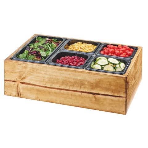 Madera Salad Station, 21-1/2"W x 12-1/2"D x 6"H, (5) pan inserts, (1) ice liner, rustic pine