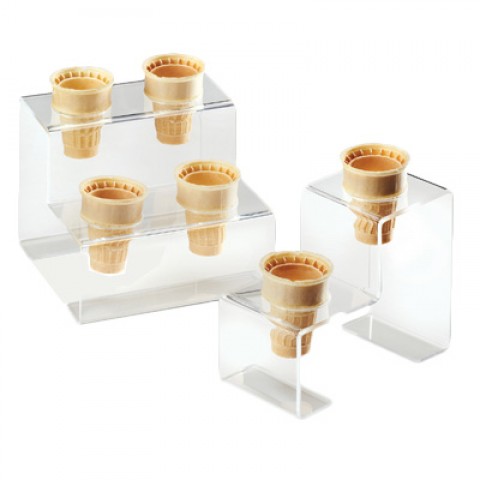 Cone Holder, 7"W x 7"D x 6"H, 2-tier, accommodates (4) serving cones, acrylic, clear