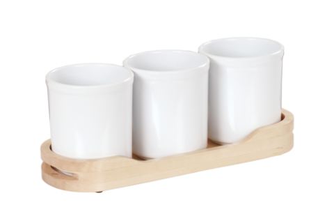 Cylinder Tray, 16"W x 5-1/2"D x 6"H, includes (3) 32 oz. melamine jars, Blonde