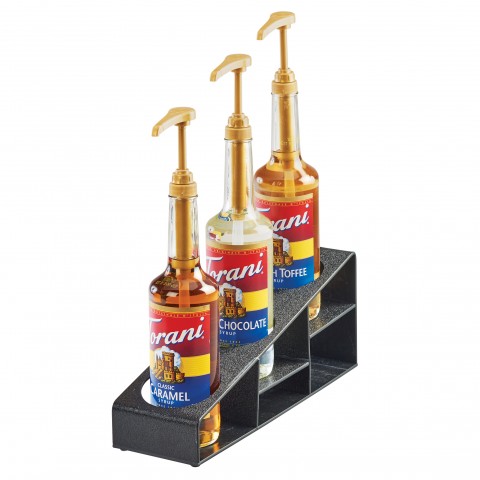 Bottle Riser, 4-1/2"W x 15"D x 6-1/2"H, 3-tier, (3) 3-1/4" dia. openings, rectangular, ABS plastic, black