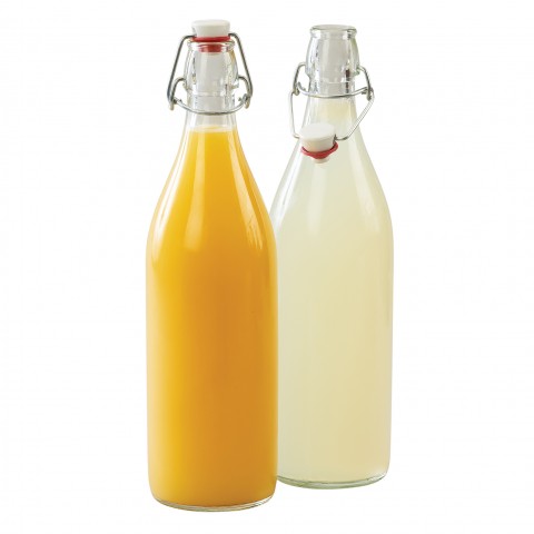 Bottle, 34 oz. capacity, 3-1/4" dia. x 12-1/2"H, rubber seal, glass, clear
