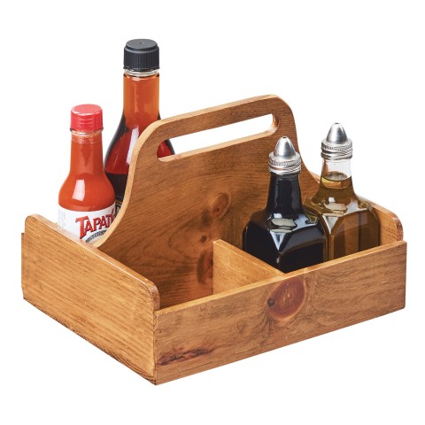 Madera Condiment Caddy, 9-3/4"W x 8"D x 7-1/2"H, (4) section, rectangular, integrated handle, rustic pine