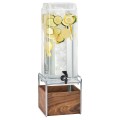 Mid-Century Beverage Dispenser, 3 gallon capacity, 8-1/4"W x 10"D x 24"H, single, ice chamber, lid, spigot, walnut base, brass frame