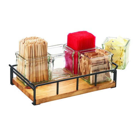 Madera Jar Organizer, 13-1/2"W x 8-1/2"D x 5"H, rectangular, (6) 4" x 4" glass jars, with handles, rustic pine base, black frame