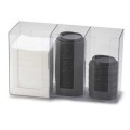 Classic Napkin/Lid Organizer, 13-1/4"W x 5-1/4"D x 8"H, 3-compartment, accommodates lids up to 4" diameter and standard sized bar napkins, wall or counter mount, ABS-plastic, clear