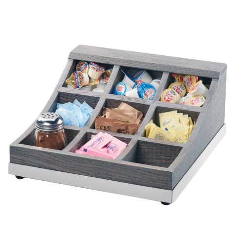 Ashwood Condiment Display, 13"W x 13-1/2"D x 6-1/4"H, (9) section, mirrored base trim, oak wood, gray wash