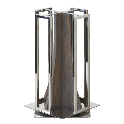 Ashwood Cup & Lid Organizer, 10"W x 10"D x 18-1/4"H, (4) section, accommodates up to 3-3/4" dia. cups or lids, revolving, mirrored metal, oak wood, ash gray