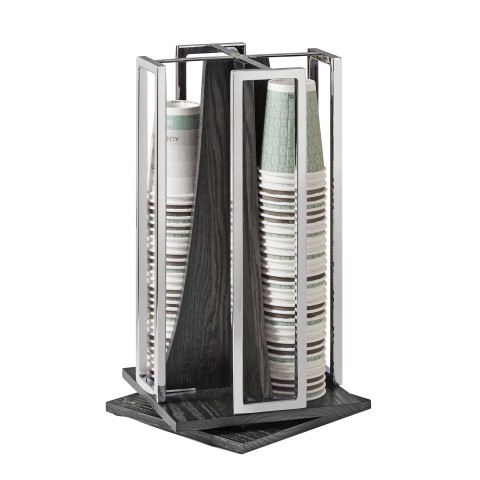 Cinderwood Cup/Lid Organizer, 10"W x 10"D x 18-1/8"H, revolving, (4) compartments, mirrored metal, oak wood, dark ash gray, BPA Free
