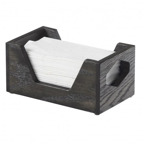 Cinderwood Napkin Holder, 9-1/2"W x 5-1/2"D x 1-3/8"H, rectangular, geometric end cutouts, oak wood, dark ash gray, BPA Free