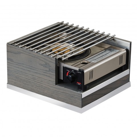 Ashwood Stove Frame Only, 12"W x 14"D x 7-1/2"H, mirrored base trim, oak wood, gray wash (butane burner not included)