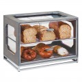 Ashwood Bread Display Case, 20"W x 13-1/2"D x 15"H, 2-tier, self serve, non-refrigerated, countertop, (4) compartments, (1) open pull out drawer, (1) (3) section pull out drawer, with handles, acrylic body, silver metal base, oak wood, gray wash