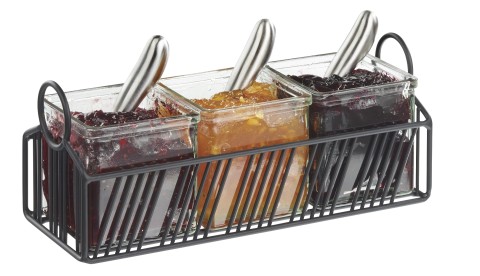 Portland Jar Display, 12-3/8"W x 4-1/2"D x 5-1/8"H, rectangular, includes (3) glass jars, metal wire, black, BPA Free