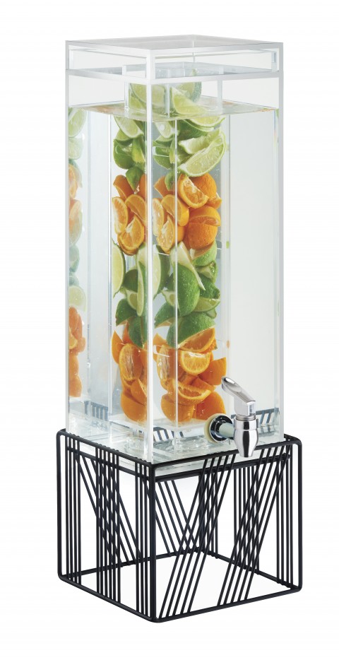 Portland Beverage Dispenser, 3 gallon capacity, 7-7/8"W x 7-7/8"D x 24-7/8"H, square, with infusion chamber, drip tray, spigot, acrylic body, wire, black, BPA Free