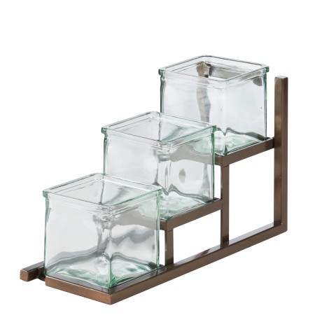 Sierra Jar Display, 5"W x 12-3/4"D x 8"H, three step unit, (3) glass jars, steel, brown, BPA Free