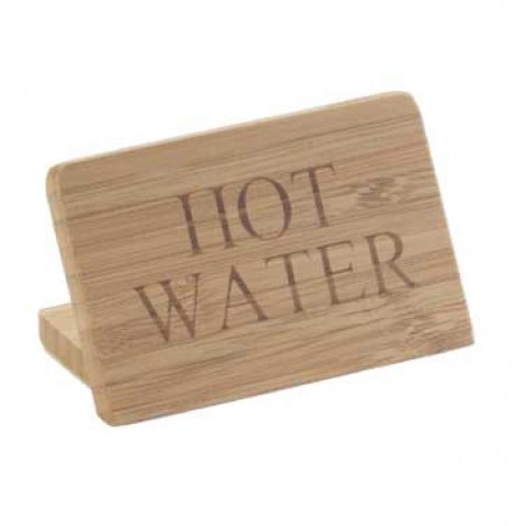 Beverage Sign, 3"W x 2"H,"HOT WATER", bamboo finish, BPA Free