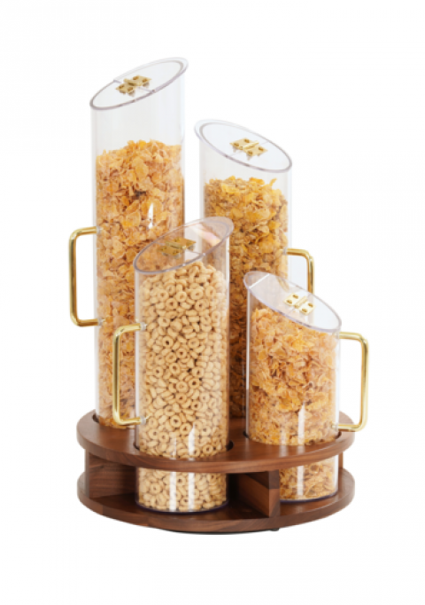 Cereal Dispenser, 12" x 12" x 20", rotating, swivel, walnut