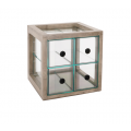 Aspen Bread Case, 14.35" x 15" x 14.88"H, (4) drawer, gray-washed pine wood frame and acrylic drawers each with black round handles