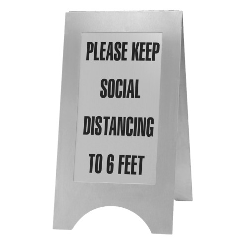 "Social Distancing" Sign, 11-7/8"W x 17-1/2"D x 22"H, double-sided, single top hinged, stainless steel