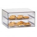Classic Display Case, 18-1/2"W x 14"D x 10"H, 2-tier, self serve, countertop, non-refrigerated, straight front, single front door with handle, see-thru design, (2) 13" x 18" clear trays, clear acrylic case, black iron accent, BPA Free (UPS Oversize 1)