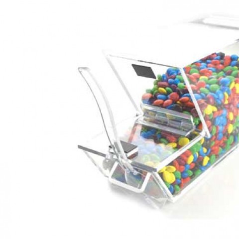 Topping Bin, 4"W x 11"D x 7"H, holster, stackable, magnetic lid will stay up for easy scooping, clear, BPA Free