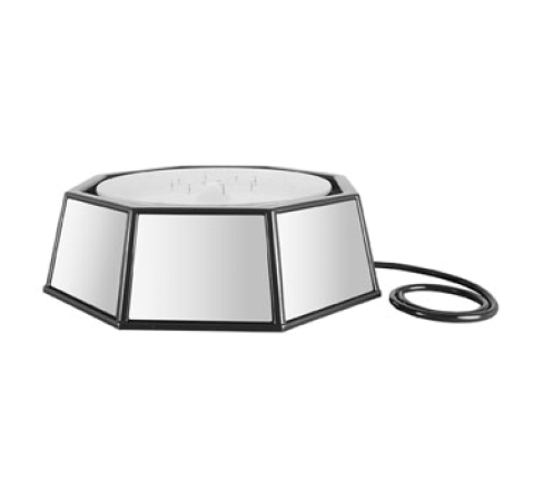 Ice Display/Pedestal, 24" dia. x 14"H, octagonal, rotational, 7 light patterns, acrylic mirror laminate panels, stain and scratch resistant, built-in LED lights and drainage system, 7 LED light patterns, supports up to 500 lbs., GFI plug with auto shut off, ABS-plastic, black 110v/60/1-ph