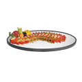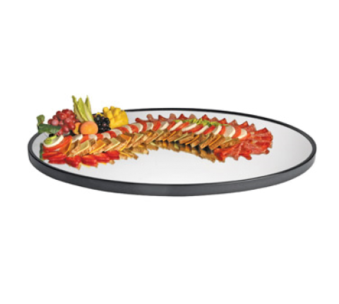 Gourmet Display Mirror Tray, 24"W x 18"D x 1"H, oval, raised rim, black acrylic trim, glass