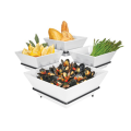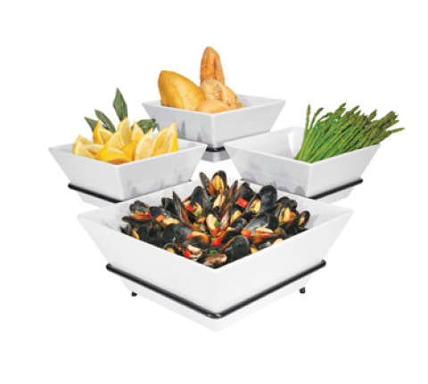 Gourmet Quad Bowl Display, 19"W x 19"D x 11"H, 3-tier, square, (3) 8" and (1) 12" melamine diamond bowls, metal wire frame, powder coated, black